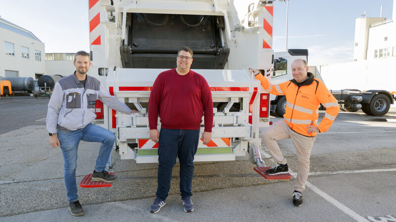 Manuel Butze, Abteilungsleiter Fuhrparkmanagement bei Berlin Recycling nahm heute, am 29. Oktober 2025, persönlich den ersten für Berlin Recycling gebauten MUT Aufbau von Steyr Automotive in Steyr ab.